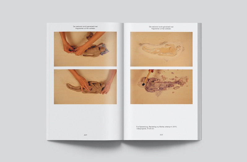 There follows several autobiographical chapters of family history, juxtaposed around full-page photographs of My Mothers Wardrobe, a 2022 photographic sequence by Hagenaars, in which (the artist’s?) hands hold, arrange and straighten what appears to be her mother’s clothing, although it has the size of six month old baby clothes.
